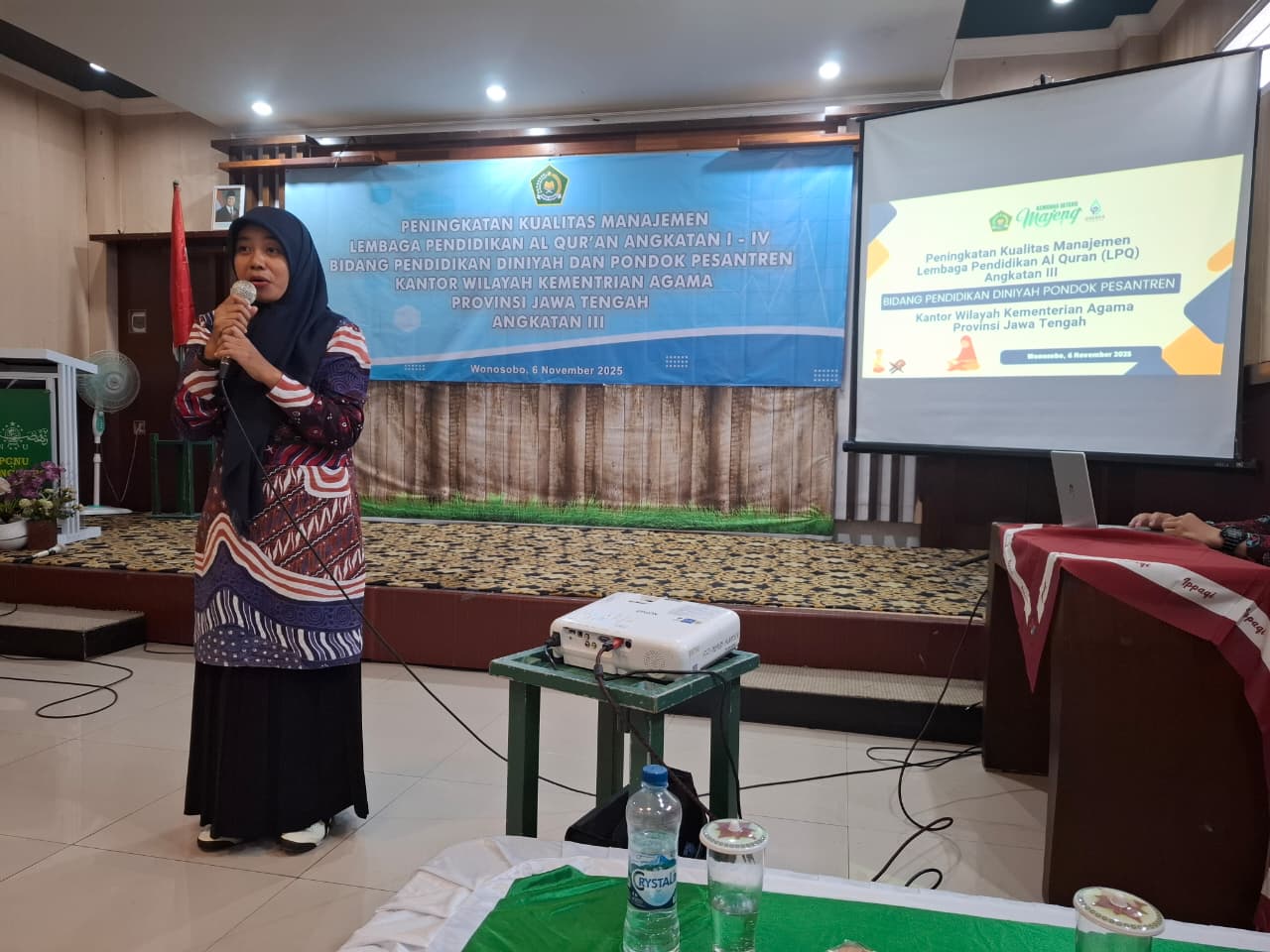Fakultas Ilmu Tarbiyah dan Keguruan (FITK) Universitas Sains Al-Qur’an (UNSIQ) Jawa Tengah berpartisipasi aktif dalam kegiatan “Peningkatan Kualitas Manajemen Lembaga Pendidikan Al-Qur’an Angkatan I–IV”, khususnya Bidang Pendidikan Diniyah dan Pondok Pesantren Kantor Wilayah Kementerian Agama Provinsi Jawa Tengah Angkatan III. Kegiatan ini diselenggarakan pada Kamis, 6 November 2025, bertempat di Gedung MWCNU Wonosobo.